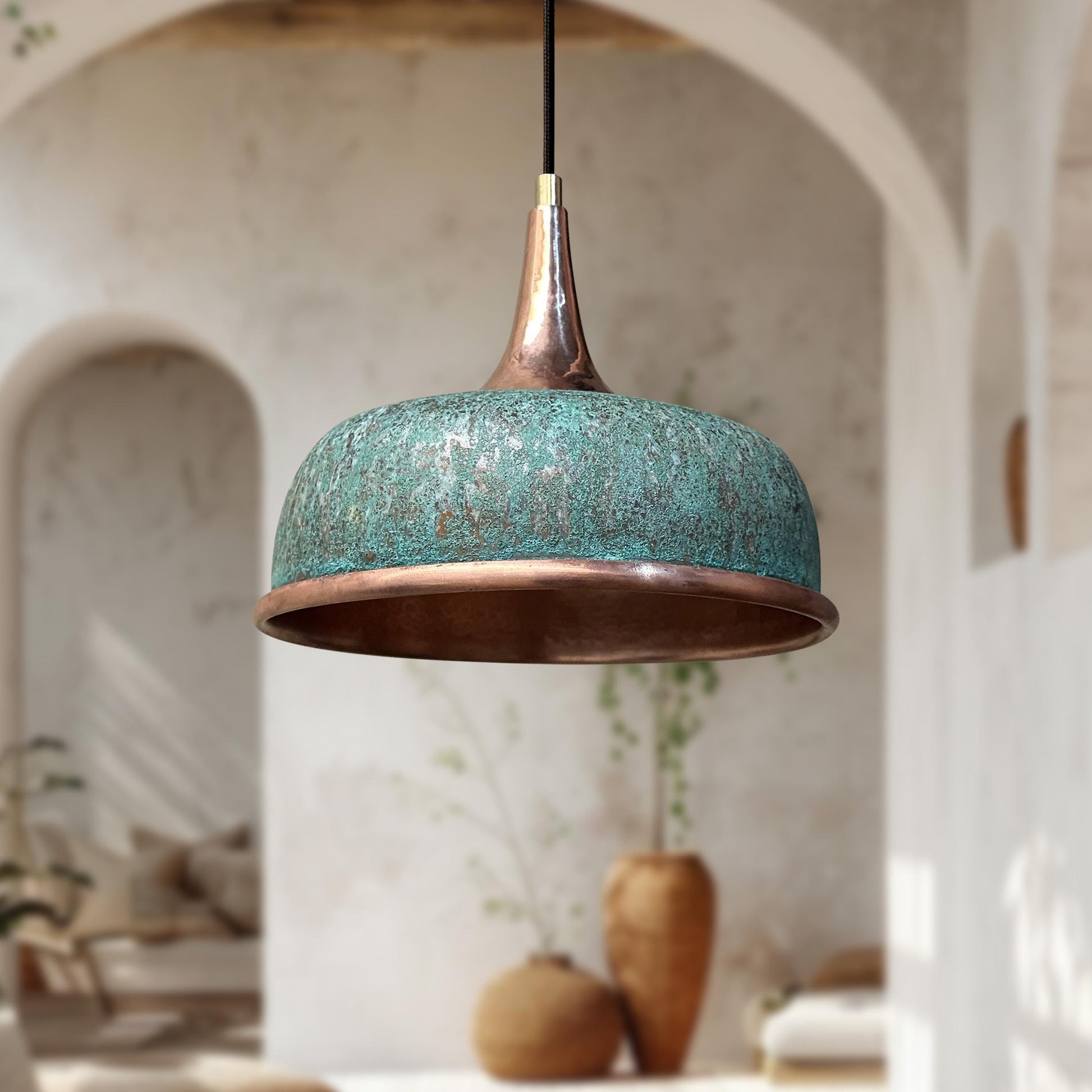 Handmade Green Patina Copper Pendant Light, Oxidized Dome Ceiling Light