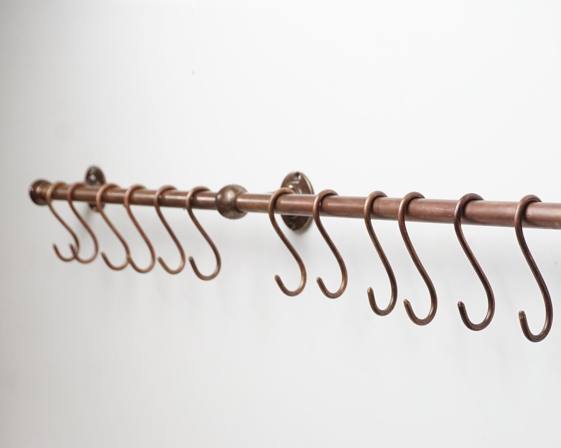 kitchen Rail with hooks, Bronze Pot Rack, Brass Rod Rail, Wall Mounted Kitchen Rail With Hooks