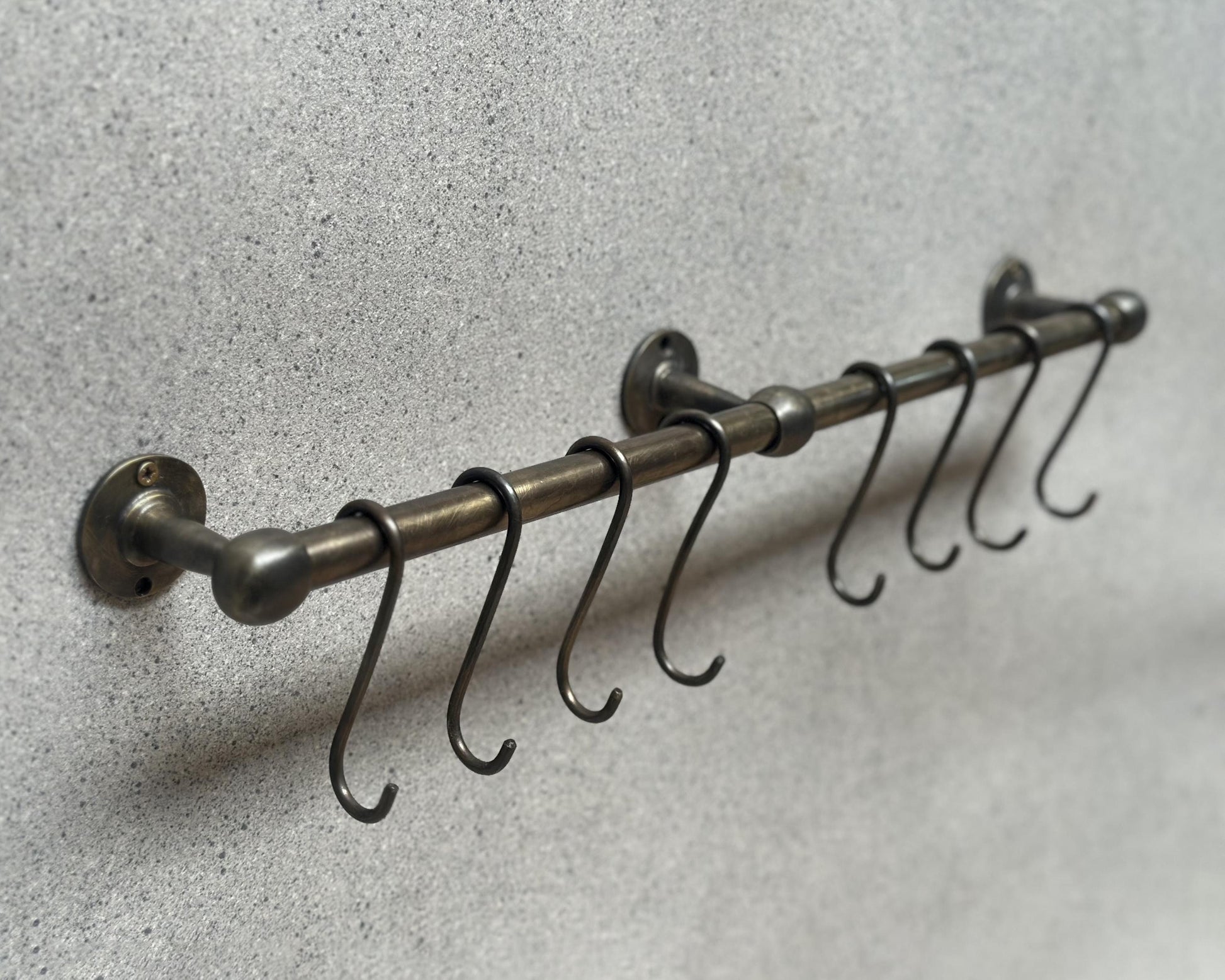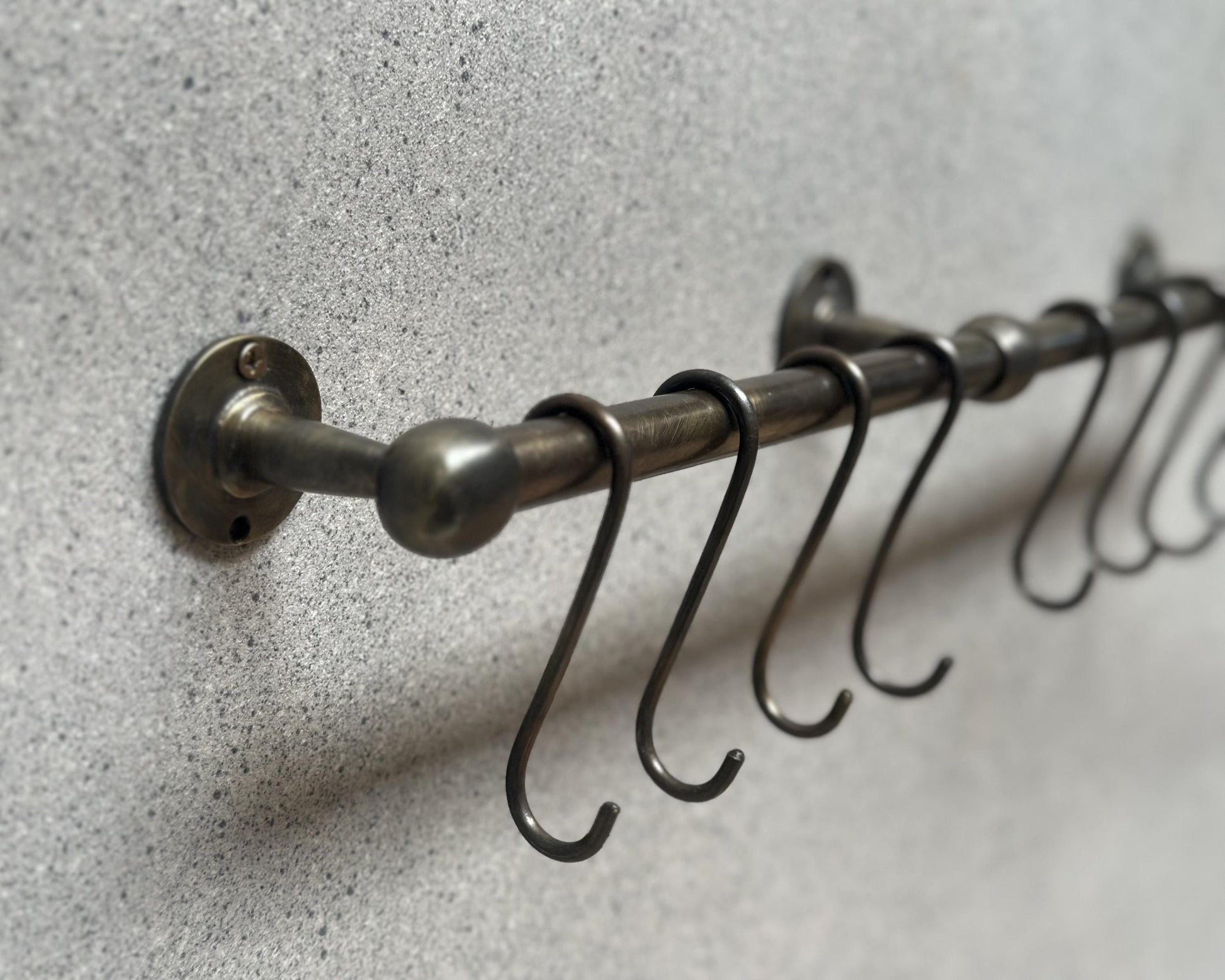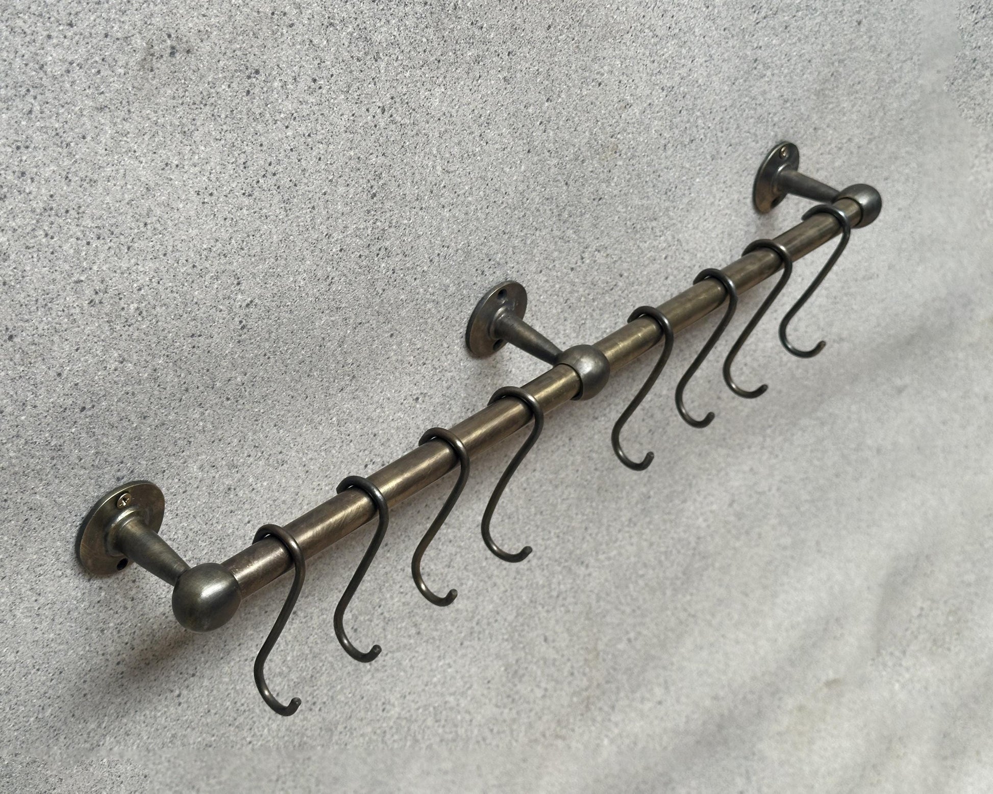 Oil Rubbed Bronze Pot Rail with hooks, Brass Kitchen Pot Rail, Wall Mounted Bronze Pot Rack, Kitchen Organizer