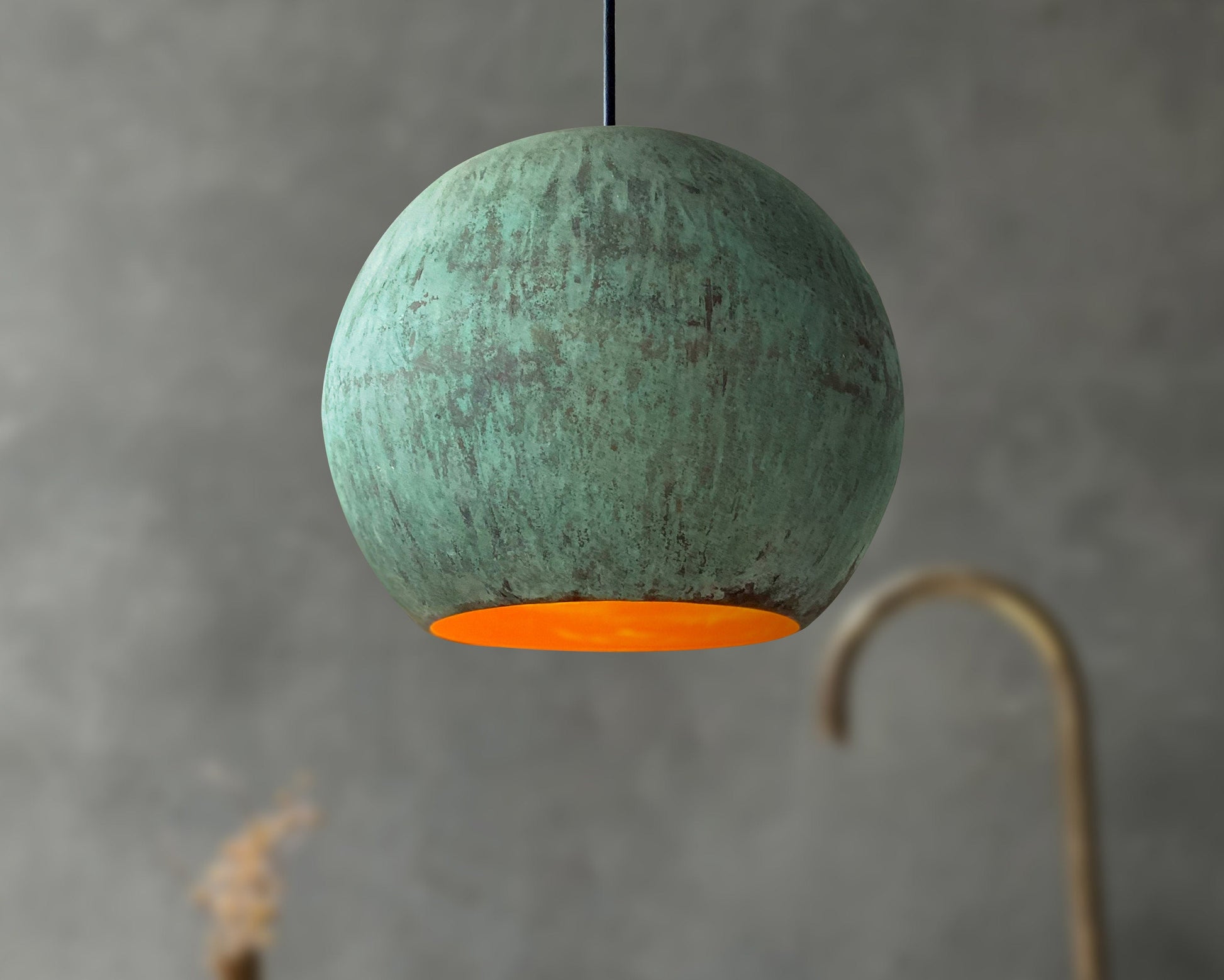 Vintage Copper Round Pendant Light, Oxidized Dome Ceiling Light, Green Patina Copper Hanging Light Fixture