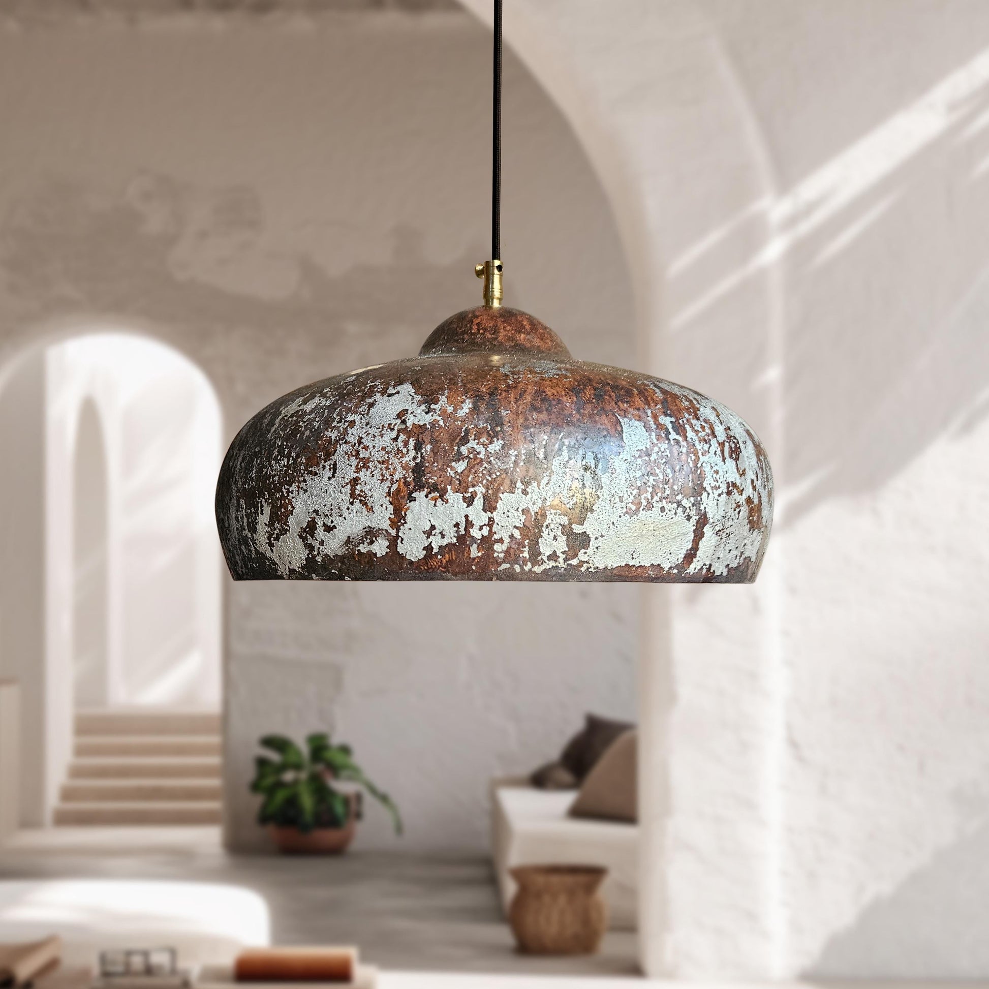 Two Rustic Copper Ceiling Lights – Vintage Pendant Kitchen Fixtures